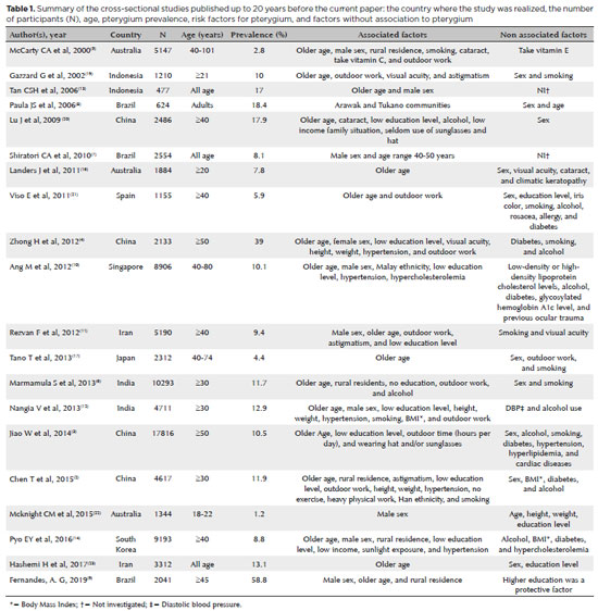 Keywords: Pterygium/epidemiology; Dry-eye syndrome; Prevalence; Risk factors