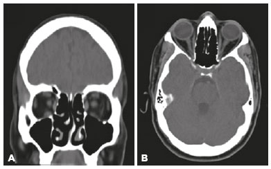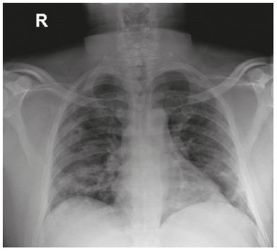 A 44-year-old generally healthy man who was referred for ophthalmologic consultation in a hospitalized institutional setting presented with a 5-day history of fever, double vision, and headache. The patient also reported fatigue, generalized muscle weakness, and loss of appetite for 1 wk. Several days before his admission, he had visited a healthcare practitioner and was sent home with antipyretic treatment. Owing to the absence of respiratory symptoms, COVID-19 was not suspected at that time. The patient had no known medical or ocular history, medications, or allergies. As his symptoms did not resolve, he was admitted to the hospital without any respiratory symptoms. Blood tests demonstrated mild lymphopenia (1.28 × 109/L), elevated C-reactive protein (92 mg/L), and D-dimer level (1.3 µg/mL) consistent with COVID-19. Lung auscultation and chest radiography indicated a bilateral pneumonia-like illness (Figure 1) that was asymptomatic. Computed tomography of the head showed no pathological findings (Figure 2). Reverse transcriptase-polymerase chain reaction (RT-PCR) was positive for SARS-CoV-2 in the patient’s first nasopharyngeal swab. Ophthalmologic examination, performed with complete personal protective equipment, revealed binocular diplopia and a limitation to abduction in the left eye. Orthophoria was noted in the right gaze. There was no additional cranial nerve involvement. Ophthalmologic examination, including pupillary response, anterior pole, and dilated fundus exam was otherwise unremarkable. Neurological examination showed normal results without any evidence of meningeal irritation. Lumbar puncture and magnetic resonance imaging were considered but not performed because symptoms resolved within 5 d of admission. Treatment included azithromycin and hydroxychloroquine for 5 d, as per the local infectious disease protocol. The patient was discharged to state-mandatory quarantine; 10 d thereafter, his condition had improved, and he tested negative for SARS-CoV-2.