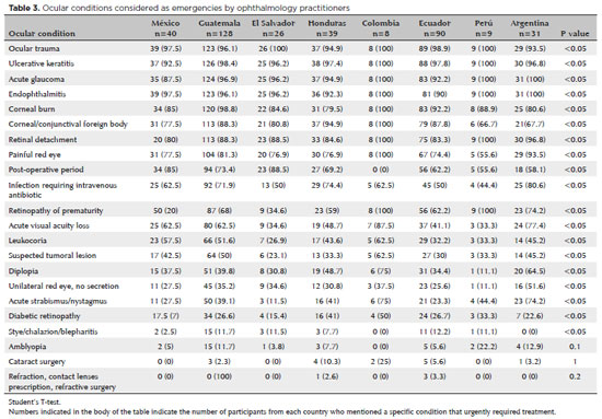 We found statistically significant differences among the ocular conditions that the ophthalmology practitioners considered as emergencies; only amblyopia, cataract surgery, and refraction/contact lens prescription/refractive surgery were agreed to be non-urgent conditions or procedures. This opinion reflects the following statement of the American Academy of Ophthalmology: “The Academy recognizes that “urgency” is determined by physician judgment and must always take into account individual patient medical and social circumstances”(20).