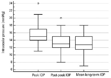 To achieve a deeper understanding of IOP behavior between visits in patients treated for glaucoma, we reviewed all charts of consecutive patients with stable open-angle glaucoma (OAG) to determine their long-term IOP profile over 5 years. The included patients had neither anatomical nor functional evidence of progression (measured using disc photos/retinography and reliable visual field tests) within the inspected interval, and no changes were made in the medical regimen during the follow-up period. Eyes with previous laser or filtering glaucoma surgery were excluded. All IOP measurements were performed, and for each patient, we calculated the mean long-term and peak IOP values. The IOP measurement in the first subsequent visit after the peak was also recorded (post-peak IOP). The following were the major outcome measures: (1) analyses of the IOP distribution values, based on central tendency (mean and median) and dispersion metrics (standard deviation and percentiles) and (2) comparison between the post-peak IOP measurements and the mean IOP values (paired t-test). The study was conducted according to the principles in the Helsinki Declaration.