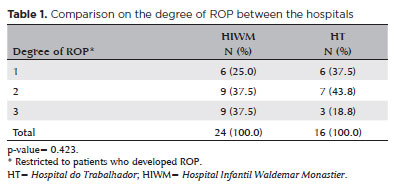 We compared two neonatal NICUs; both had similar infrastructure and human resources, with the main difference being the origin of the patients. Whom were transported from other maternities to the HIWM and at the HT the patients were from the own maternity hospital. The differences in ROP incidences are justified because HIWM patients received diversified management in the first hours of life and at the time of transport until they reached the reference hospital. At HT, all the patients came from their own maternity, following the same care protocol, with a better outcome.