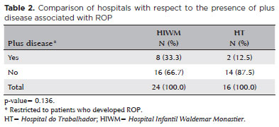 Purpose: Evaluate the patients in two neonatal intensive care units in Paraná/Brazil and identify the risk factors for the development of retinopathy of prematurity.
