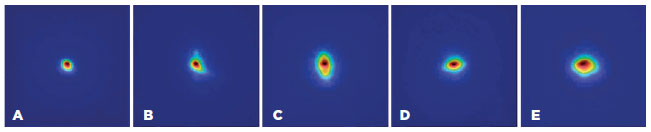 Recently, the double-pass technique has been proven as a useful tool for measuring high-order aberrations and light scattering(6), a technique that starts from a point light source produced by a laser beam whose image is formed on the retina. When reflected in the retina, the light crosses twice the ocular medium of the HD Analyzer, allowing the evaluation of the retinal image quality using a point projected on the retina, and the size and shape of the reflected light spot are collected and analyzed after the retinal reflex. Images contain all the information about the optical quality of the eye, including higher-order aberrations and diffuse light, which are not usually considered in most aberrometric techniques(7,8). Vision quality has been previously assessed pre- and postoperatively in cataract, refractive, and corneal surgeries(9,10), showing that refractive surgery allows similar postoperative vision quality when compared with preoperative measurements.