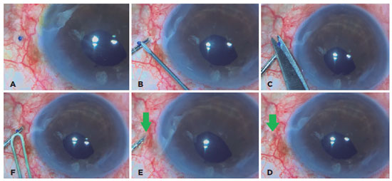 Next, this second flange is inserted into the scleral tunnel (Figures 1F and 2F) using McPherson forceps (Sklar, West Chester, PA, USA). The IOL is in the bag (Figure 4).