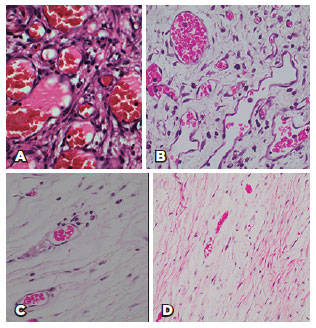 In each photograph, the number of blood vessels, inflammatory cells, and polymorphonuclear (PMN) and mononuclear neutrophils was manually counted with the help of Image J software, version 1.42. Immunohistochemistry with CD34 marker was used to facilitate the identification of new vessels. The number of vessels and inflammatory cells was added up based on three photographs of each slide, with the mean and median being used in event analysis in addition to the Kruskal-Wallis nonparametric analysis of variance.