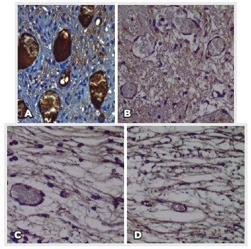 Angiogenic activity assessed with CD34 immunohistochemistry was similar to that observed in the physiological healing process. There was intense tissue neovascularization at 7 days PO and little angiogenic activity at 180 days PO with mature endothelial cells remodeling the capillaries. PMMA does not have angiogenic growth factors on its surface that lead to stimulated vascularization, as is the case with 45S5 Bioglass®(16).