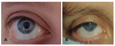 Three months later, the proptosis and hypotropia had subsided, and the patient was asymptomatic. In addition, the palpebral edema had resolved (Figure 1B), and the optic nerve remained normal.