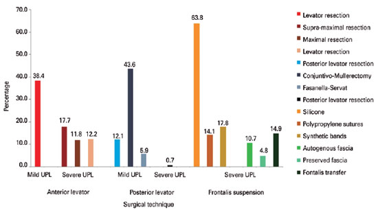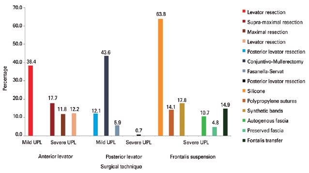 There are two web-based surveys on ULP surgical management. The first was published in 2011 by the American Society of Ophthalmic Plastic and Reconstructive Surgeons (ASOPRS) to identify trends in ptosis management(1), and the other was published in 2016 by the British Oculoplastic Surgery Society (BOPSS) to evaluate patient satisfaction(2).