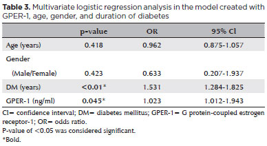 Multivariate regression analysis was performed to assess the researchers’ model, which considers GPER-1 (a possible retinopathy preventative) alongside age, sex and diabetes duration (factors known to influence DR development). This analysis determined that GPER-1 and diabetes duration were statistically significant factors in DR pathogenesis (Table 3).