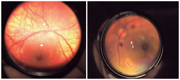 The clinical importance of ocular abnormalities in the examined neonates varied. For instance, subconjunctival hemorrhage, retinal pigmentation, self-resolved retinal hemorrhage, vision-threatening macular hemorrhage, large physiological cupping of the optic disc, congenital disc anomalies, choroidal nevus and coloboma, optic pit, severe cataract, and vitreous hemorrhage are some of the diseases listed in order of their clinical importance. Importantly, clinically significant anomalies should be monitored periodically because they can affect vision with a long-term risk of amblyopia or may necessitate some type of intervention(12).