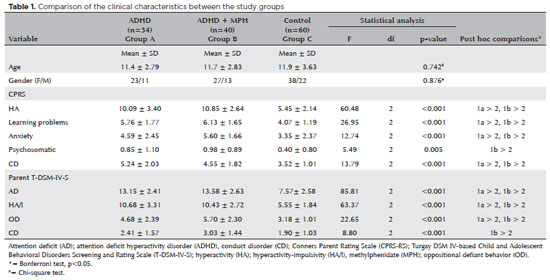 Caucasian pediatric patients who met the following inclusion criteria were recruited in the patient group. The parents should completely answer the psychological questionnaires for the assessment of ADHD and the degree of their children’s disruptive behavior. They should also complete the Turgay DSM-IV-Based Child and Adolescent Behavioral Disorders Screening and Rating Scale (T-DSM-IV-S)(11,12) and the Conners Parent Rating Scale-48 (CPRS-48)(13). These tests were used to evaluate the participants’ attention deficit, hyperactivity, learning problem, anxiety, conduct disorder, and behavioral changes.