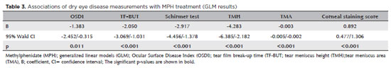de atenção com hiperatividade apresentaram parâmetros de superfície ocular sugestivos de olho seco, apesar do uso de metilfenidato. Assim, elas requerem um acompanhamento oftalmológico próximo para evitar complicações oculares de olho seco que ameaçam a visão.