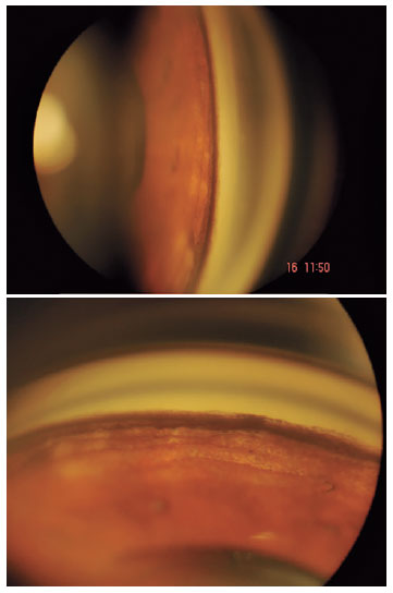 Pigment deposition initially affects the trabecular meshwork but can lead to damage in the post-trabecular drainage system after some time. Following this rationale, if we bypass this obstruction in the early phase, it may be possible to restore the entire trabecular pathway(10), thus preventing post-trabecular damage. This can explain the excellent results with iStent® implantation in the present case, suggesting that the post-trabecular drainage system was viable, possibly due to the small amount of time elapsed since the onset of the disease (only 1 year). In conclusion, iStent® proved to be effective and safe to control IOP in this case of BADI, after resolution of the acute phase of the disease. This is the first report of iStent® use on a case of BADI.