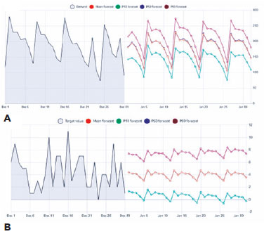 In both the datasets, the columns were defined as item_id, timestamp, and target_value, according to the AWS Forecast guidelines, and the model was applied in predicting target_vaue according to item_id.