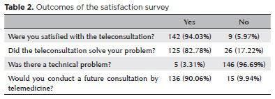 The data collected included each patient’s birth date, sex, reason for consultation, symptoms, main diagnosis, and management. Data from a satisfaction survey were also analyzed.