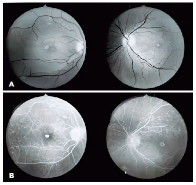 A 54-year-old woman (Case 1) was referred to the retina unit of our hospital under suspicion of Stargardt disease. Twenty years ago (at the age of 30 years), she was evaluated for macular alteration with annular perifoveal atrophy of the RPE in both eyes (hyperfluorescent on FA) (Figure 1). Maculopathy was not related to a pharmacological cause and she showed no history of chloroquine or hydroxychloroquine treatment. With respect to family history, she referred to no previously studied visual disability in her mother.