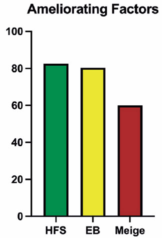 Ameliorating factors were reported by 76.5% of patients (80.4% for those with blepharospasm, 82.6% for those with hemifacial spasm, and 60% for those with Meige’s syndrome) (Figure 6). Rest (45.1%), local compression (34.3%), and cold water (9.8%) were the most frequently cited. Apart from local compression, additional 13 (12.8%) patients reported employing a sensory trick as an ameliorating factor, including singing (4.9%), concentrating on a pleasant activity (3.9%), speaking (2%), and whistling (2%).