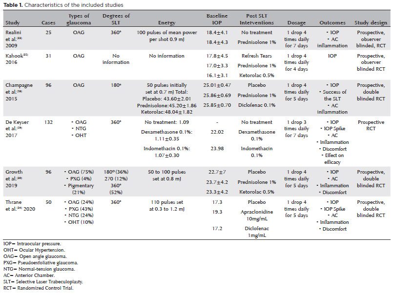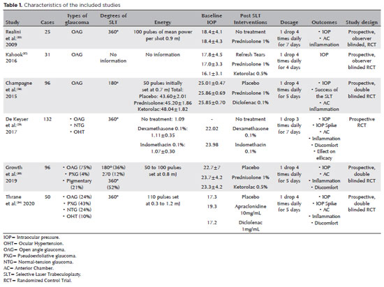 Glaucoma is a progressive disease that causes irreversible visual loss leading to blindness. First-line treatment for glaucoma included the use of topical eye drops. However, the regular use of preservatives containing eye drops has been associated with several complications, majorly ocular surface diseases(37,38). Moreover, another issue of topical treatment is the questionable compliance of the patients(39). SLT addresses several of these problems. A recent multi-center RCT demonstrated non-inferiority of SLT when compared to eye-drop treatment protocols, as proposed by the European Glaucoma Society and the National Institute for Health and Clinical Excellence(40), in terms of health-related quality-of-life, clinical outcomes, and cost-effectiveness. The LIGHT study conducted by Gazzard et al. revealed that SLT demonstrates an excellent safety profile and is an effective initial treatment for early glaucoma treatment. This evidence-based study provides further evidence for clinicians to consider offering SLT as the first-line treatment for most newly diagnosed glaucoma patients(41). Recently, they also determined that repeat SLT provided effective IOP reduction, which maintained IOP comparable in medication-naive OAG and OHT eyes requiring retreatment(42). However, the use of anti-inflammatory drops after SLT treatment remains a controversial issue. It is therefore crucial to determine the efficacy of anti-inflammatory drops after SLT, mainly because of the theories supporting inflammation to be part of the action mechanism of SLT(21). The present study was designed to enlighten this issue. To the best of our knowledge, no other systematic review and meta-analysis have dealt with this topic in the past.
