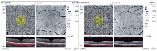 Figure 2. Choroidal capillary plexus flow area (A) in a Study Group participant and (B) a Control Group participant.