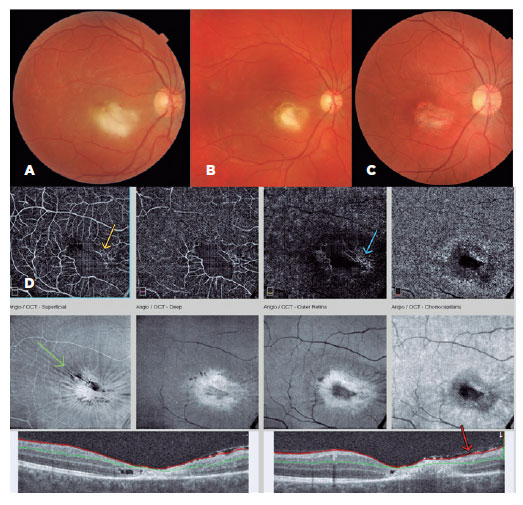 In this study, 23.5% of the total cases that underwent ophthalmologic examination in outbreak A had retinochoroiditis lesions, 75% occurring in the first 3 months. The ocular lesions were more frequent between 2 and 3 months after the systemic disease. One of the cases presented with significant visual damage associated with macular lesions. All cases presented with systemic symptoms, with an initial diagnosis of dengue or sinusitis. Despite severe systemic disease, none of the cases with eye lesions received specific treatment in the acute phase of the disease. The greater number of cases treated in the acute phase in cluster B may be due to the prior knowledge of cluster A, detected by the surveillance system; this may have alerted clinicians to the diagnosis and encouraged systemic treatment. We emphasize the importance of guidance regarding the need for an ophthalmological examination in case of eye complaints after the disease.
