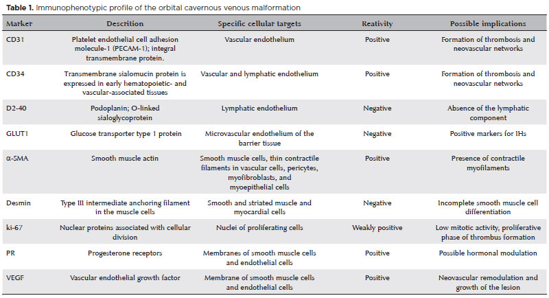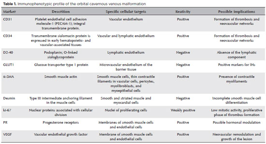 Table 1 summarizes the immunohistochemical profile of orbital CVMs and its possible implications.