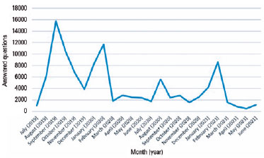The app was used most between July 2019 and March 2020. There was an increase in the hit rate after July 2020 and in January 2020. The overall success rate was >70% in most of the months studied (Figure 1).