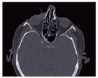 Up to 40% of lacrimal tumors are not suspected via medical examination and are diagnosed during DCR.(2) In our case, the diagnosis was made while performing DCR.