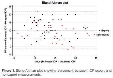 The sample size was calculated to achieve a statistical power of 0.8 at a significance level of 0.05, detecting a medium effect size of 0.65. Data were summarized numerically with counts and percentages and means and standard deviation. Student's t test was used to compare subjective and objective IOP values, and an unpaired t test was used to compare subjective and objective IOP measurements between both groups of surgeons. Differences were considered statistically significant when p<0.05. An additional Bland-Altman analysis was used to evaluate the concordance of measurements among surgeons. Statistical analysis was performed using SPSS version 24 (IBM Corp.) or Stata version 18 (StataCorp LP, College Station, TX, USA).
