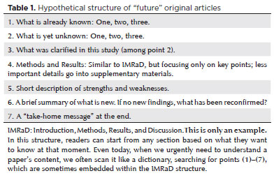 I anticipate that future papers will become more formulaic and dry, resembling a dictionary or an anatomy textbook. For instance, essential information may be condensed into bullet-point formats (Table 1), replacing the traditional IMRaD (Introduction, Methods, Results, and Discussion) style. Once adapted, this style may enable readers to rapidly grasp core points, much like referencing a dictionary.