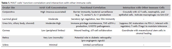 As research in this area progresses, it may pave the way for innovative interventions that could improve disease prevention and treatment strategies in ophthalmology. Integrating diverse perspectives and research outcomes enhances our understanding of MAIT cells' role in ocular health maintenance, improving our ability to treat and manage ocular disorders.