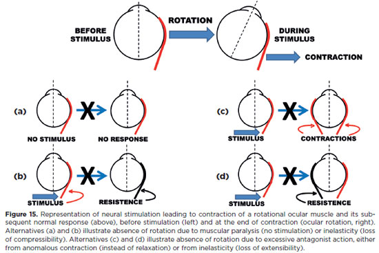 Therefore, even for a “simple” ocular rotation, a defective result (partial or complete absence of rotation) may have different causes (Figure 15):