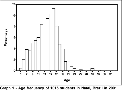 This is a cross-sectional study, in which the sample was randomly selected. It consisted of people between the ages of 5 and 46 years, enrolled in elementary or high schools, of the private or public system in Natal, Brazil, in 2001.