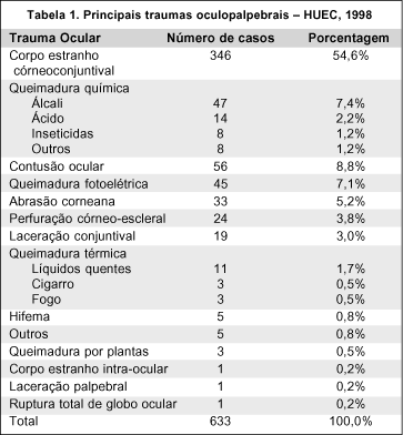 Com o objetivo de conhecer melhor a ocorrência de traumas oculopalpebrais, os fatores associados e o perfil de seus portadores em nosso meio, realizamos este estudo.
