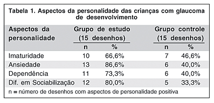 A tabela 1 mostra os aspectos da personalidade das crianças com glaucoma de desenvolvimento.