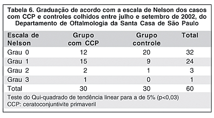 Os exames complementares estão agrupados na tabela 6, que descreve o eletrorretinograma (ERG), os teste de visão de cores e o campo visual (CV).