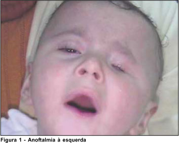 Paciente de sexo masculino, branco, 6 meses, procurou o Departamento de Oftalmologia da Santa Casa de São Paulo com história de malformação orbitária à esquerda (Figura 1).