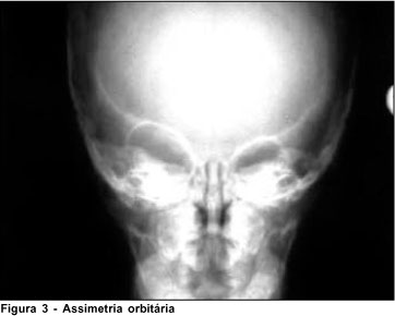 Realizou-se radiografia da face e ultra-sonografia ocular bilateral, mostrando olho direito com comprimento axial de aproximadamente 22 mm e cavidade vítrea normal (Figura 3).