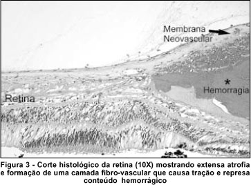 A retinopatia diabética proliferativa é marcada pela presença de proliferação neovascular que é um fator importante na patogênese de várias complicações que levam à cegueira, como o descolamento tracional da retina e hemorragia vítrea(20). Os novos vasos sanguíneos crescem dentro e sobre a retina e na face recentemente exposta pelo descolamento do vítreo posterior(7). O estímulo para a neovascularização vítreo-retiniana é sabidamente devido à liberação de um fator angiogênico produzido pela retina isquêmica. Estudos recentes revelaram que um fator angiogênico extremamente importante é o VEGF ("vascular endothelial growth factor" ou fator de crescimento vascular endotelial)(20-21).