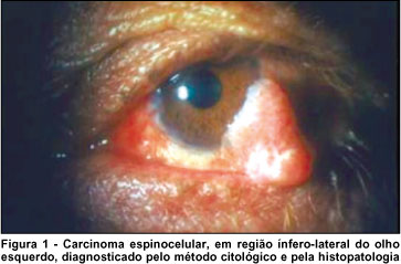 Os resultados encontrados neste trabalho foram semelhantes aos descritos na literatura. Demonstrou-se, com o método, alta especificidade para o diagnóstico de lesões conjuntivais, além de ausência de resultados falso-positivos, já que todos os diagnósticos citológicos de malignidade foram confirmados pelo exame histológico(4). A neoplasia maligna mais freqüente da conjuntiva foi o carcinoma espinocelular, concordando com o resultado de outros estudos(2,7).