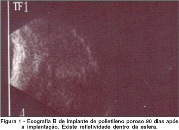 A vascularização do implante de polietileno poroso ocorre no primeiro mês de implantação(12-13) e, por causa disso, no presente estudo optou-se por iniciar a avaliação ultra-sonográfica com 30 dias. Confirmando a eficiência do método, o uso desta técnica possibilitaria obter informações a respeito da esfera para estudos in vivo.