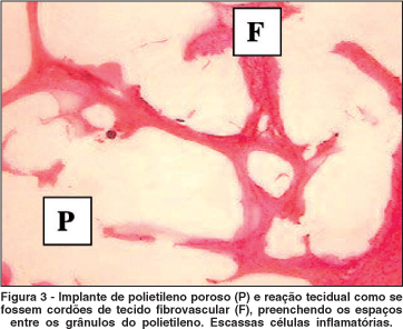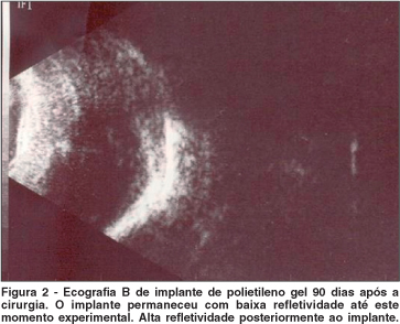 O implante de polietileno poroso, quando vascularizado, mostrou picos de refletividade baixa, semelhantes ao sangue(14), permitindo conhecer que o Polipore® recebe aumento gradual de neovasos e o Polietigel® não se vasculariza. Portanto, este é um exame que pode ser incorporado às pesquisas como um dos indicativos de que o implante está recebendo vascularização, ou seja, está se integrando ao hospedeiro.