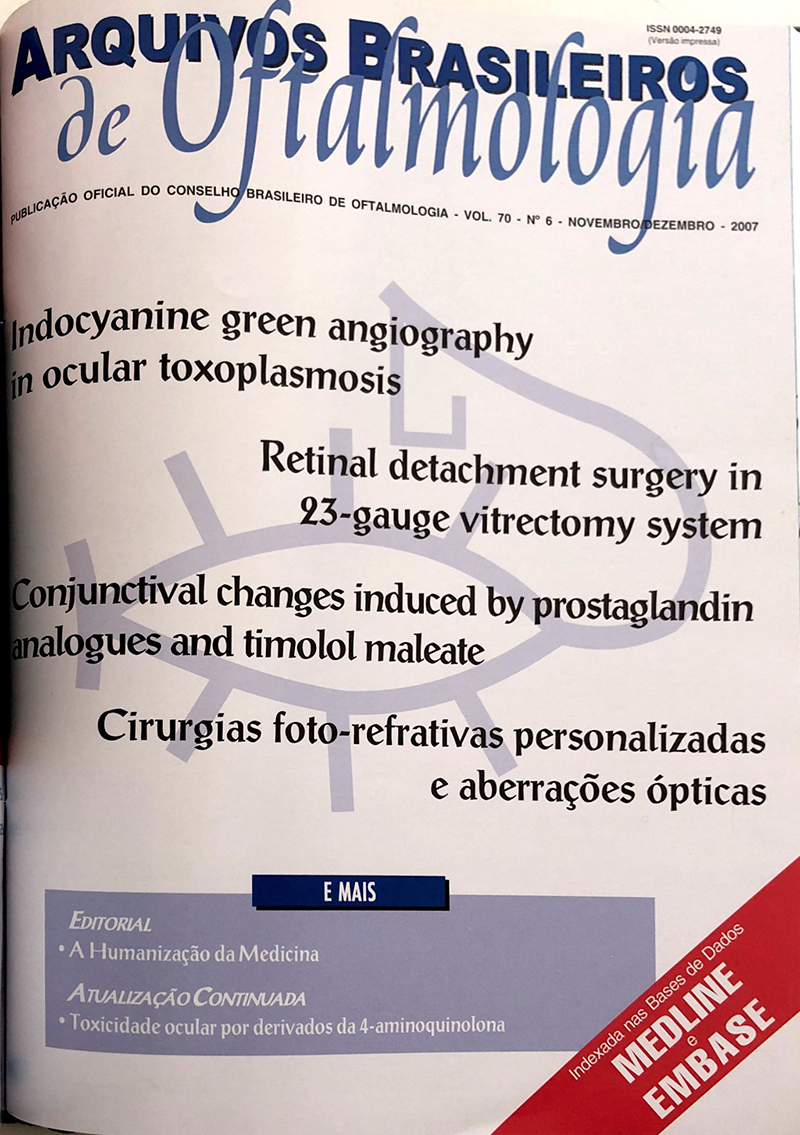 PURPOSE: To compare histological changes induced by antiglaucoma medications in the rabbit conjunctiva. METHODS: Fifty New Zealand rabbits were divided in 5 groups of 10 animals. The left eyes were treated daily with one drop of bimatoprost 0.03%, travoprost 0.004%, latanoprost 0.005%, timolol maleate 0.5% or artificial tears containing benzalkonium chloride (BAK) for 30 days. The right eyes served as controls. Superior limbic conjunctival biopsies were performed at the 8th and 30th day in 5 rabbits of each group. The conjunctiva was fixed with 10% formaldehyde, followed by HE and PAS staining. Morphohistometric quantitative analyses were performed to evaluate the following parameters: inflammatory infiltrate, epithelial thickness, number of goblet cells, diameter and number of blood vessels. RESULTS: At the 8th and 30th posttreatment days, all groups, except one that received artificial tears, exhibited a diffuse inflammatory infiltrate, composed by lymphocytes and neutrophils, which was denser in the timolol group than in the prostaglandin (PG) analogues groups. At the 30th day, the timolol group also showed an increased subepithelial collagen density and a significant increase in epithelial thickness (p=0.0035). The goblet cell density was significantly increased at the 8th day in the group treated with travoprost (p=0.0006), and at the 30th day in those treated with bimatoprost (p=0.0021) and latanoprost (p=0.009). CONCLUSIONS: Although a moderate, diffuse inflammatory infiltrate was observed in PG-treated eyes, no changes in conjunctival epithelial thickness or subconjunctival collagen density were observed with these medications, suggesting that these drugs induce fewer changes than timolol maleate in the rabbit conjunctiva.
